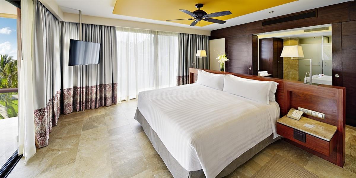 Featuring 497 smoke-free rooms and suites, each is designed with elegant Italian porcelain floors and teak wood accents for a luxurious stay in the heart of Cancun's Hotel Zone. Every room comes with your choice of a king or two queen beds, custom-designed headboards, a private terrace or balcony, a stunning white-glass bathroom, and a complimentary mini-bar for your convenience.