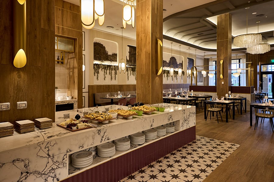 Start your day with a fresh, flavorful buffet breakfast at Arenal, featuring live cooking stations and plenty of vegetarian options. In the evening, enjoy themed dinner nights or explore international cuisine at specialty restaurants—Italian classics at L’Anfora, vibrant Japanese dishes at Tokyo, or creative fusion at Krystal. For daytime bites and themed buffets, Papagayo poolside restaurant serves up casual favorites, transforming into an à la carte spot by night.